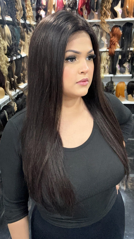 #20 Rose - 24in Middle Part Lace Front Long Wig - Color Black Brown 26in