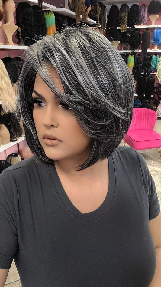 #21 Aly - 13x7 Free Parting Lace Front Wig - Color Dark Gray 12in