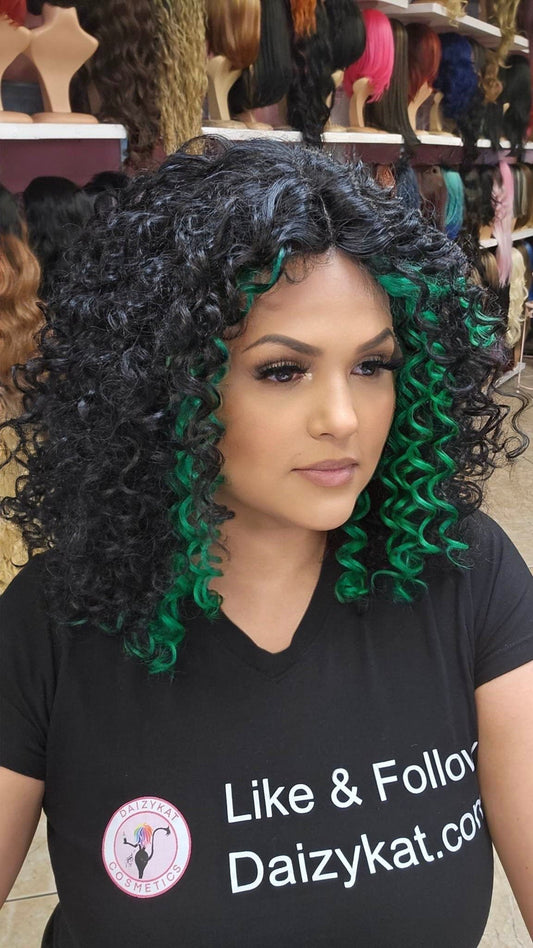 #91 Lupe - Middle Part Lace Front Wig - Color 1B/Green