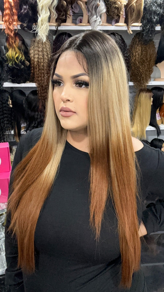 #40 Mia - Deep Middle Part Lace Front Wig - Color Blonde/Brown 26in