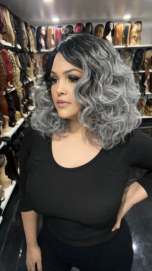 #52 Judy - Left Part Lace Front Wig - Color Grey 14in