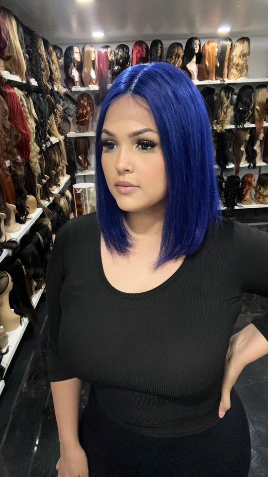 #54 Carrie - 100% Human Hair Wig - BLUE 12in