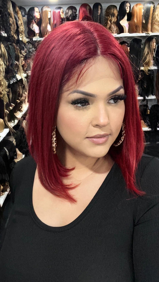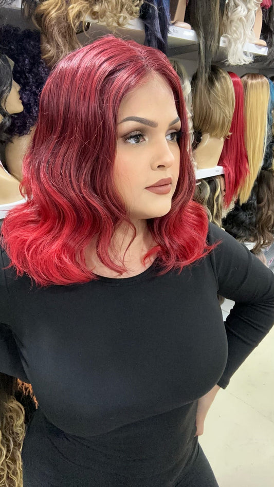 #56 Aly - 13x7 Free Part Lace Front Wig - Color Red 12in